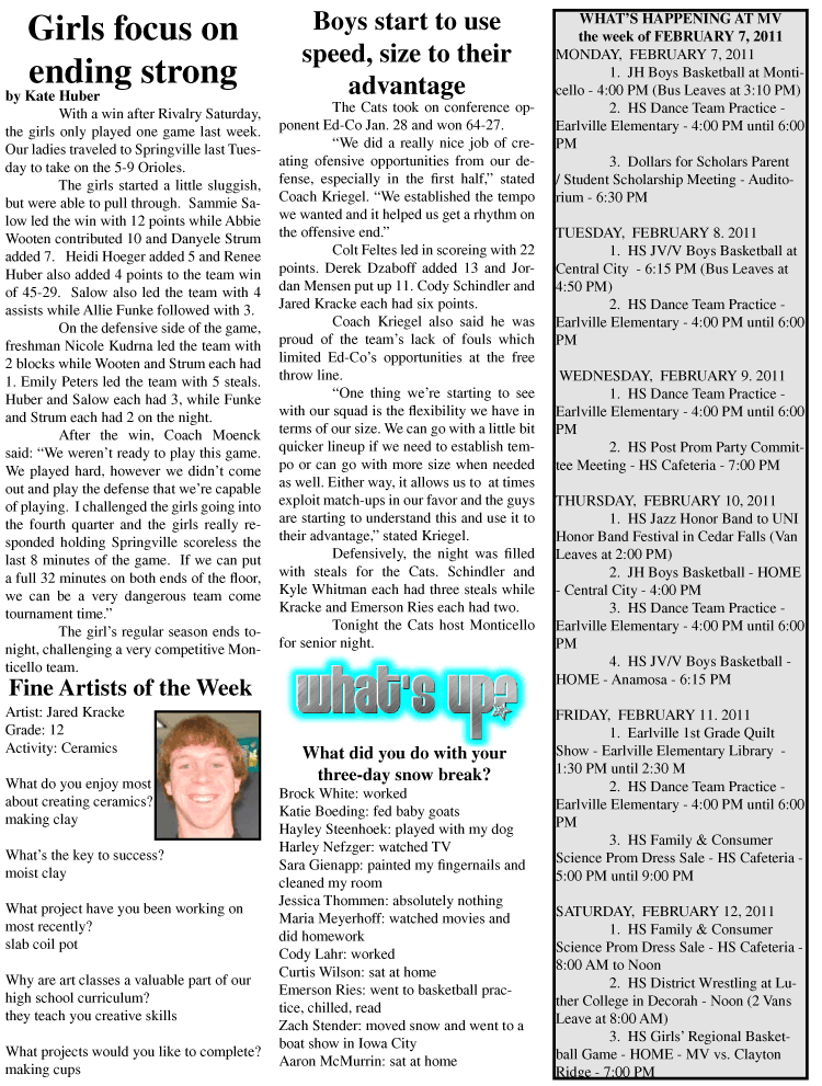 This week's Echo is an abbreviated version due to the snowstorm that kept us out of school for three days.